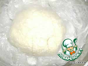 Сделайте из теста шар, накройте плёнкой и оставьте тесто подходить 1,5-2,5 часа. Тесто будет готово, если при нажатии пальцем вмятина не исчезнет сразу.