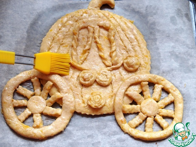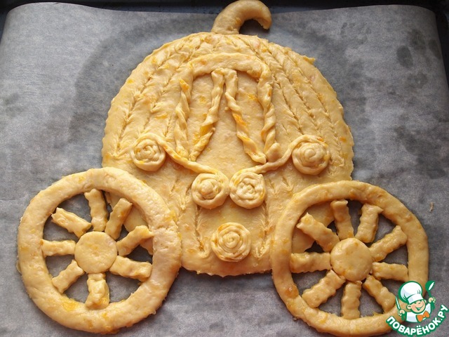 Сформировать из теста любые пироги, в зависимости от фантазии. У меня тесто превратилось в карету :-)