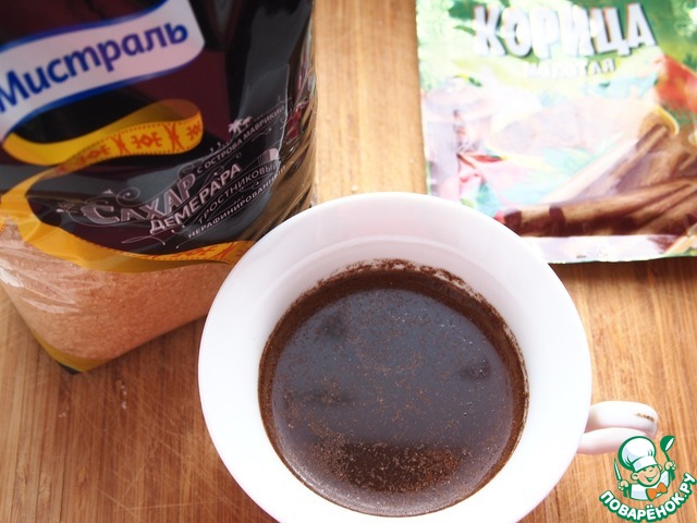 В теплой воде размешать тростниковый сахар (1/2 ст. л.) и корицу.