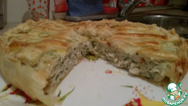 | Легкий воздушный пирожок на слоеном тесте с нежной куриной начинкой, слегка хрустящей корочкой и волшебным ароматом! Помимо всех этих достоинств - готовится считанные минуты и также быстро исчезает со стола :) |