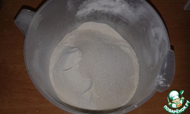 Перемешать. Положить мягкое сливочное масло и перетереть в крошку