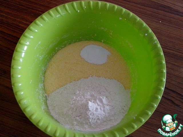 Добавить разрыхлитель и муку.