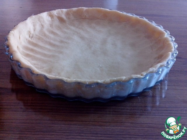 Выложить тесто в форму, растянуть руками и сформировать бортики.