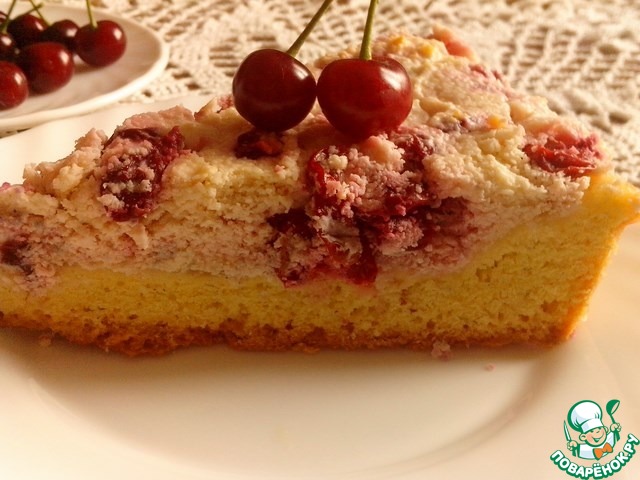 Пирог с вишней и творожным кремом