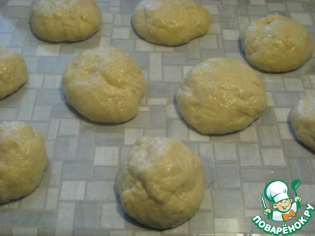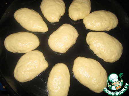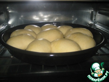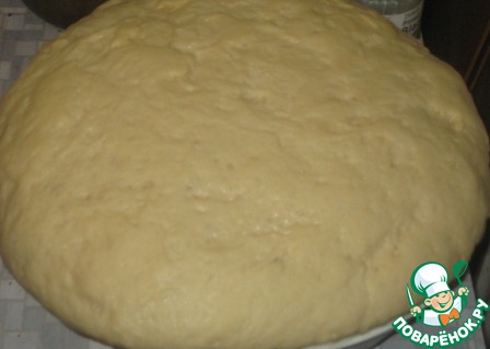 Замесить сдобное дрожжевое тесто в соответствии с Вашим любимым рецептом. Я готовлю его опарным способом, в 2 этапа. Сначала готовим опару: в слегка взбитые яйца добавляем теплое молоко, сахар, дрожжи и немного муки, ставим в теплое место на 15-20 мин. Далее добавляем мягкий маргарин, растительное масло, соль и вымешиваем с постепенным добавлением муки, ставим в теплое место минимум на час. Тесто готово!