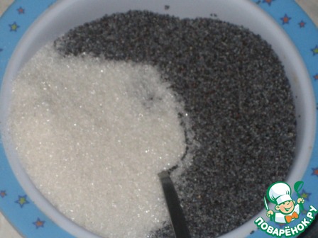 Пока тесто выстаивается, готовим начинку: мак смешать с сахаром и ванильным сахаром