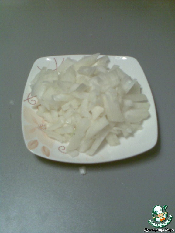 Сначала готовим начинку. Луковицу помыть, почистить, мелко порубить ножом.