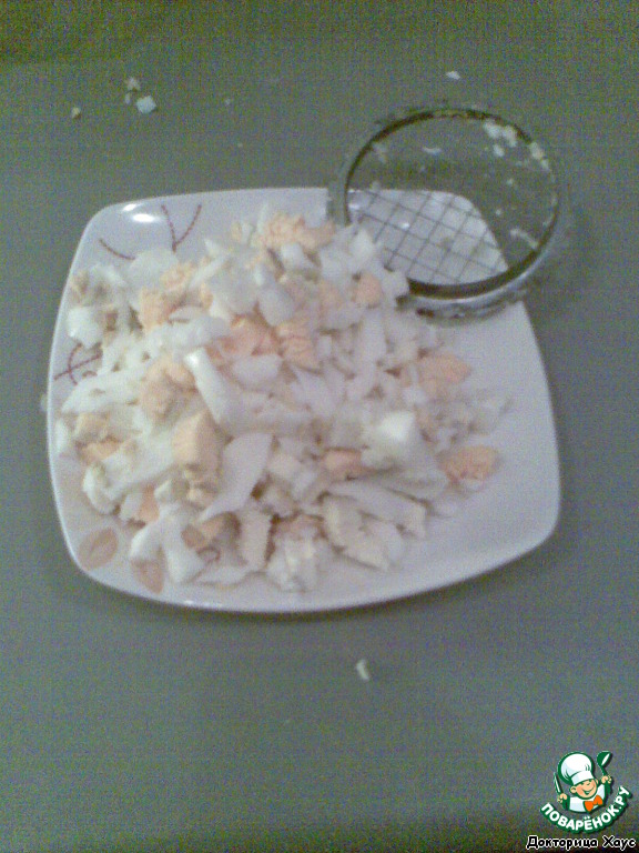 Отварить яйца. Измельчить. У меня вот такая слегка устаревшая яйцерезка.
