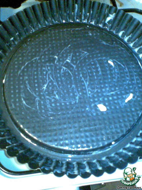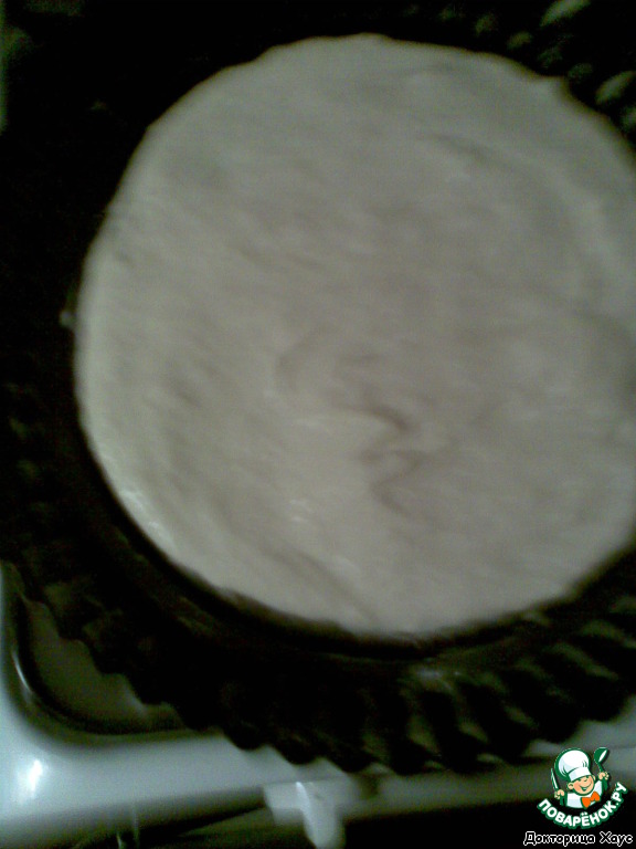 Поверх начинки - оставшееся тесто. Разравниваем ложкой. Видим, что примерно получается. Ставим в духовку. Я ставила в холодную на 60 минут. Температура 200*.