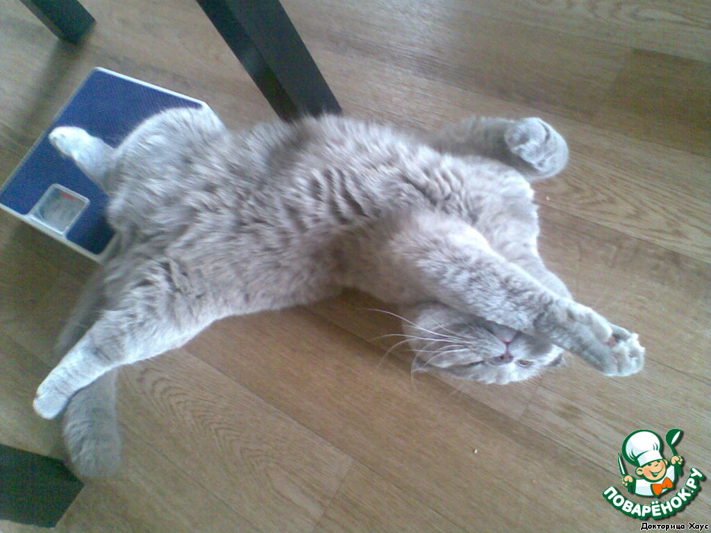| Этот замечательный пирог был испечен вечером накануне первого Дня Рождения нашего любимого котика, шотландского-вислоухого Кекса. Съеден был с утра на завтрак двумя взрослыми, одним ребенком, и, соответственно, двумя братьями нашими меньшими. Этот насыщенный и нежный вкус с ярко выраженным вкусом сдобы никого в нашей семье не оставил равнодушным! Быстро готовится, быстро съедается! Примерная стоимость блюда - 70 рублей. Источник рецепта - свекровь золовки. |