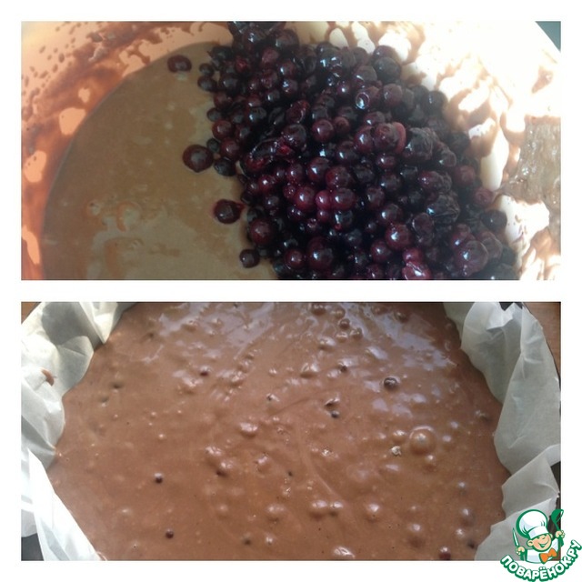 Добавить ягоды в тесто и аккуратно перемешать. В форму выстеленную пекарской бумагой выложить тесто и отправить в духовку на 40-50 мин при 180 гр