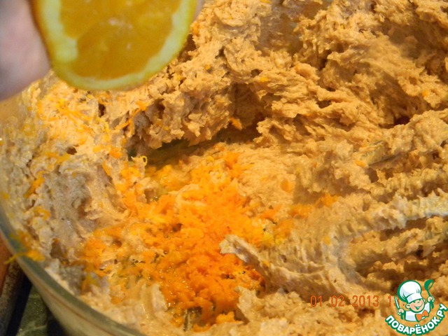 Добавить муку, разрыхлитель теста, молотый миндаль, специи.