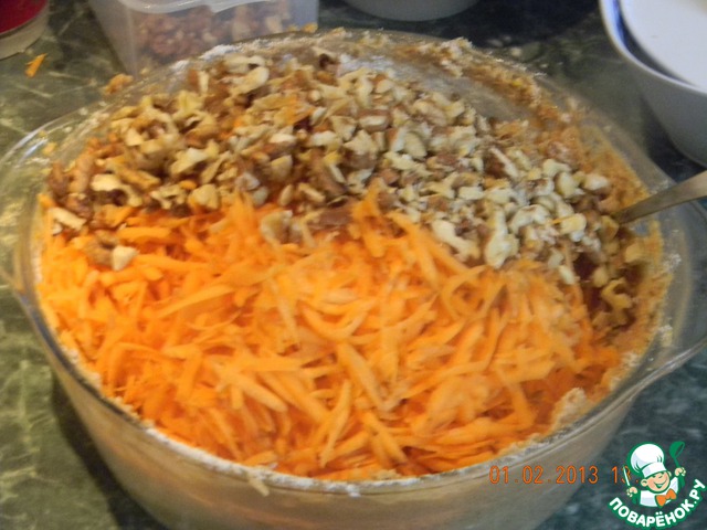 Грецкие орехи и морковь. Все хорошо перемешать.