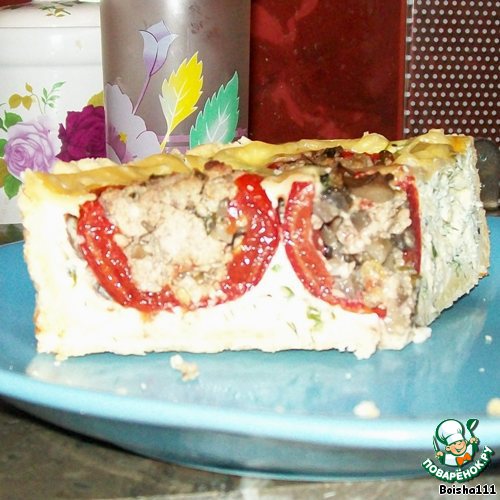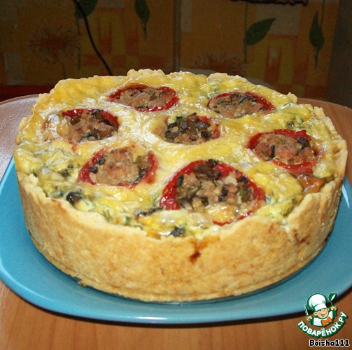 Количество используемых продуктов условно, поскольку все зависит от размера используемой формы для выпечки, размеров помидоров, высоты пирога.