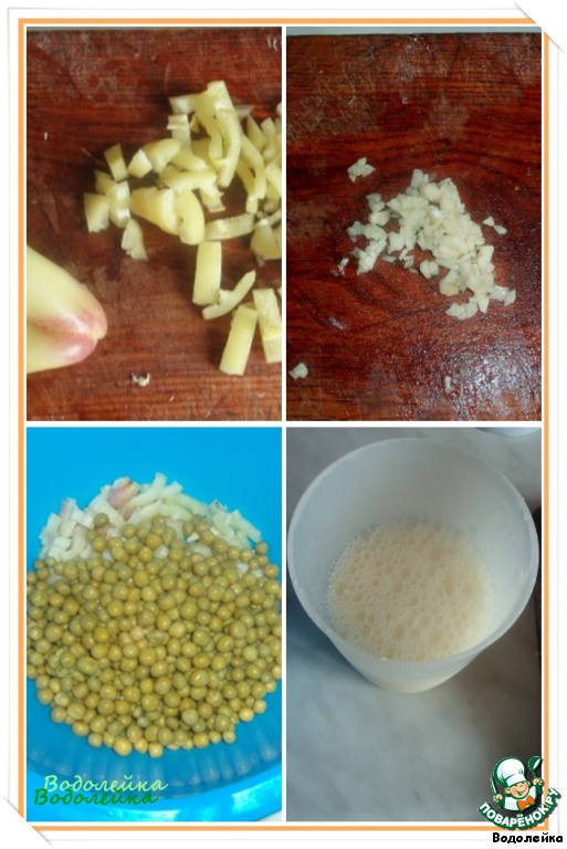 Перец лучше брать яркий (т. е. красный, желтый, оранжевый), тогда будет очень красиво смотреться (у меня, к сожалению, был перец светло-желтоватый сорта белозерка).