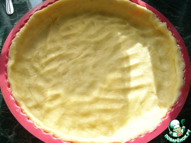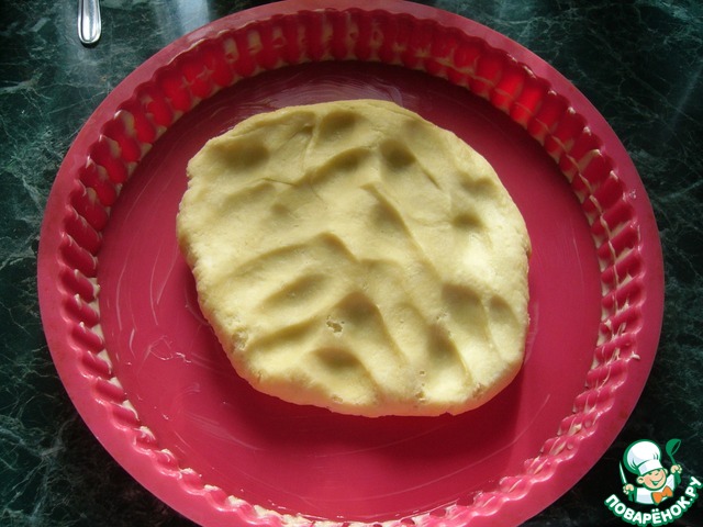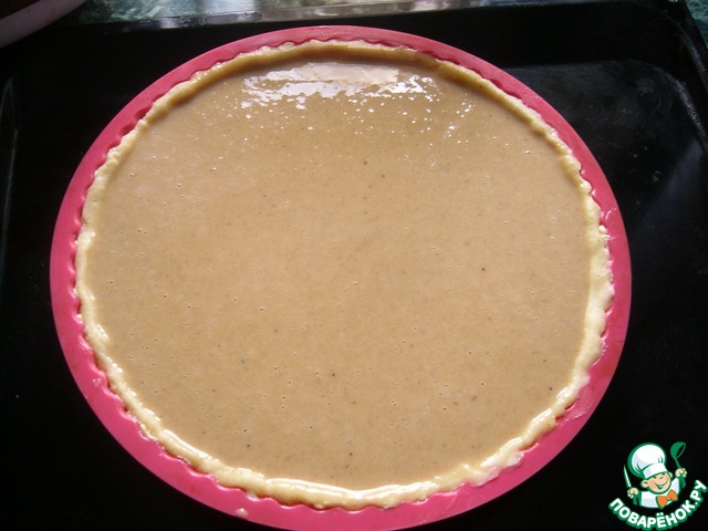 После чего достать, положить в форму, смазанную маслом (у меня силиконовая, диаметр 24 см, высота 3 см).