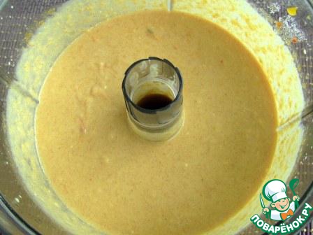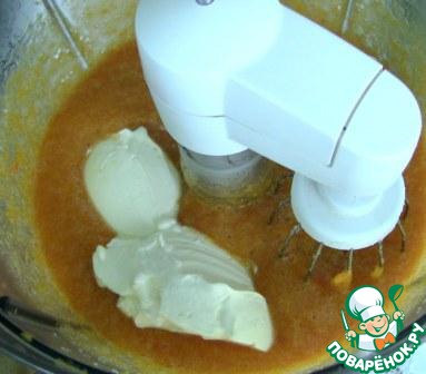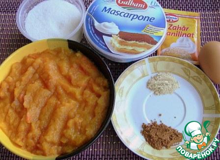 Взбиваем в комбайне (блендером) тыкву до однородности. Добавляем яйцо, сахар, специи и маскарпоне, еще раз взбиваем до однородности.