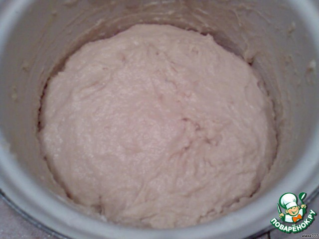 Насыпать на стол оставшуюся муку, выложить на неё тесто, тщательно вбить муку и хорошо вымесить.