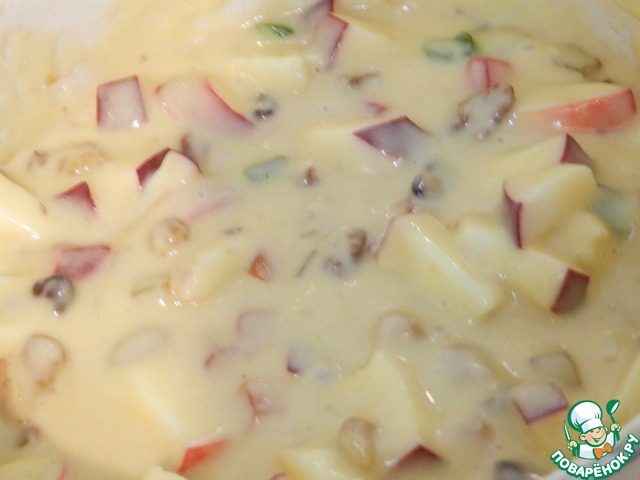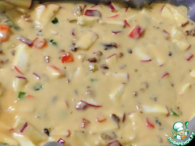Орехи, цукаты, яблоко добавляем в тесто, перемешиваем.
