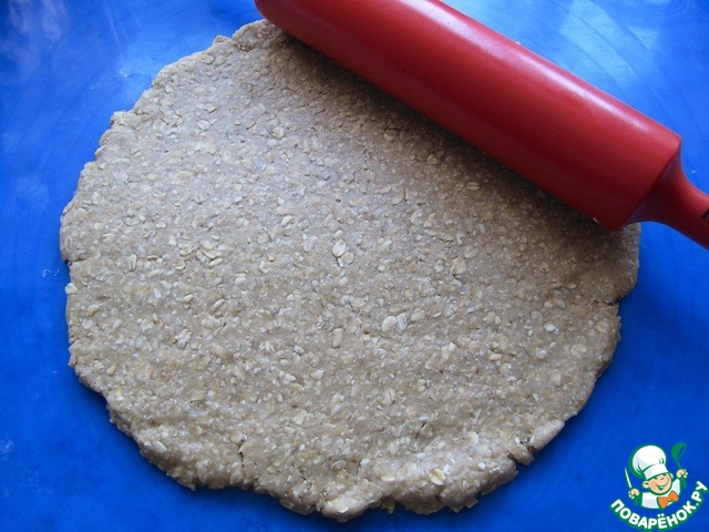 Для основы пирога часть хлопьев измельчить в блендере, а часть - оставить целыми. Добавить 60 г мягкого сливочного масла, 1 яйцо, 2 столовые ложки сахара.