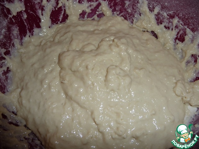 За это время опара увеличится и появится пенная шапочка, станет пузырчатой. Можно заводить тесто.