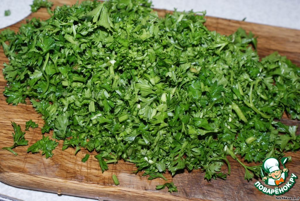 Петрушку вымыть, обсушить и нарезать