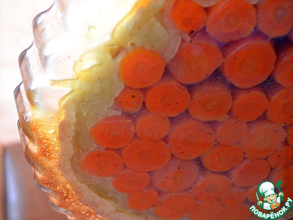 Морковку устанавливаем так, чтобы она не подходила вплотную к краям. Собственно, не обязательно иметь круглую форму, можно выложить круг из морковки на противне.