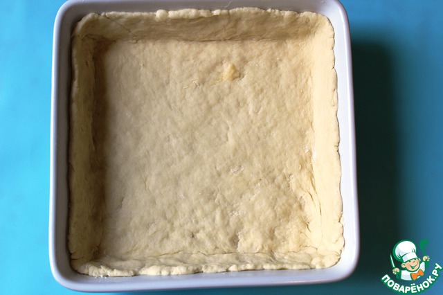 Выкладываю тесто, в смазанную маслом форму, формирую бортик.