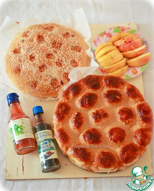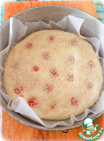 дала подняться, пальцами сделала углубления, в ямочки в тесте накапала из бутылочки сладкого чили.