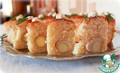 Вкусная нежная корочка сверху, а внутри пикантное яичко.