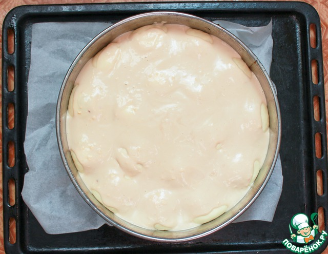 Вылить заливку сверху пирога.