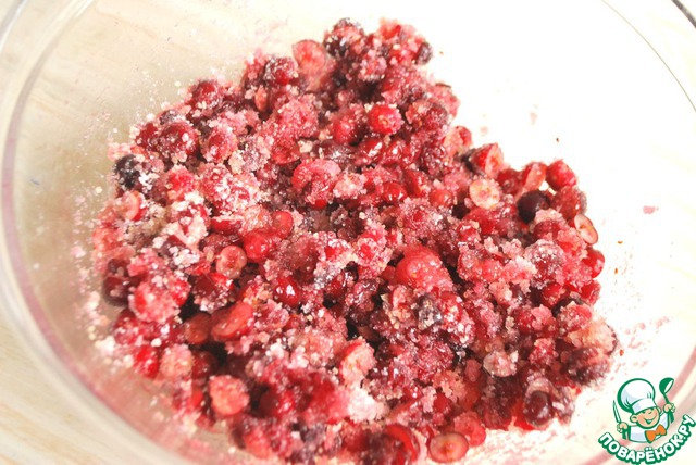 Аккуратно перемешать клюкву с сахаром, накрыть пленкой и поставить в холодильник минимум на пару часов, лучше на ночь.