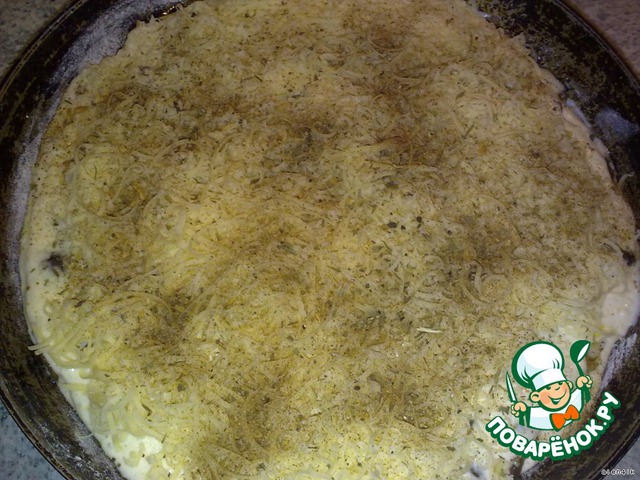 Посыпать тертым на мелкой терке сыром и приправой для пиццы. Поставить запекать в духовку при 180* на 25 минут (нужно смотреть, т.к. духовки у всех разные).