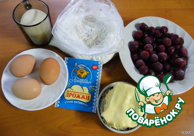 Смешайте муку с дрожжами.Добавьте 3 яйца,сахар,молоко,размягченное слив.масло и замесите тесто.