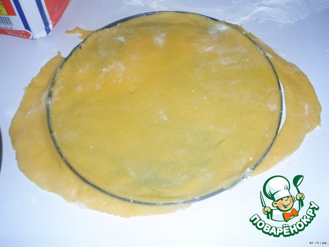 Муку просеять через сито. Миксером смешать до образования крошки муку, яйцо, сливочное масло или маргарин и сахар. Затем руками вымесить эластичное тесто и сделать из него шар. Положить в холодильник. 2 /3 теста раскатать на посыпанной мукой поверхности. Вырезать круг
