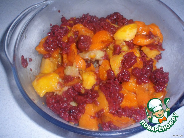 Выложить тесто в форму и в некоторых местах наколоть вилкой. Выпекать около 15 минут, затем дать остыть. На слабом огне в глубокой сковороде растопить сливочное масло или маргарин, доведя его цвет до слегка коричневатого. Добавить муку, сахар и все хорошо перемешать до образования крошки. Из оставшегося теста скатать валик. Выложить его вдоль края испеченного коржа. Пальцами размять верх валика. Отделить белки от желтков. Белки взбить в крутую пену. Тщательно смешать яичные желтки, творог, сметану, молоко, ваниль, крахмал. Венчиком размешать в полученной массе взбитый белок. Вмешать порезанные фрукты и ягоды. Нагреть духовку до температуры 200 градусов. Творожно-фруктовую массу выложить поверх коржа и аккуратно разровнять деревяной лопаточкой. Сверху посыпать приготовленной из муки и сахара крошкой. Выпекать торт до готовности.