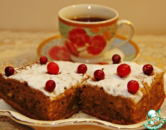 Вот такой "Коричневый" пирог появился из духовки через 45 мин. Т. к. у меня было много теста, я сделала пирог в прямоугольной форме и 6 кексов. :)