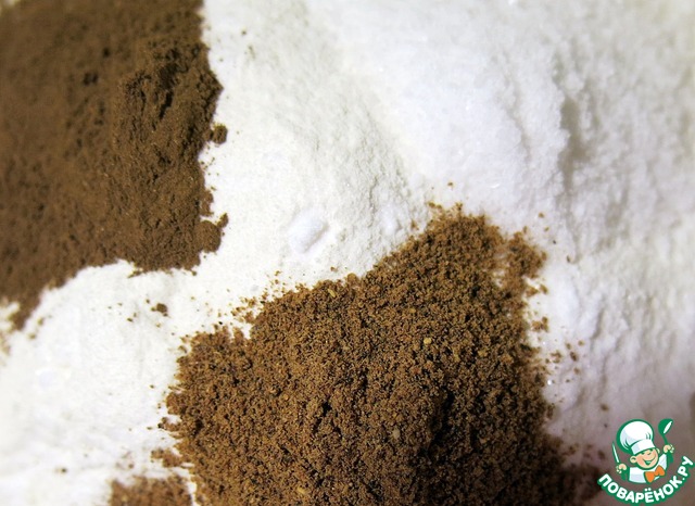 В миску просеять муку, добавить соль, соду, корицу и мускатный орех. Всё хорошо перемешать.