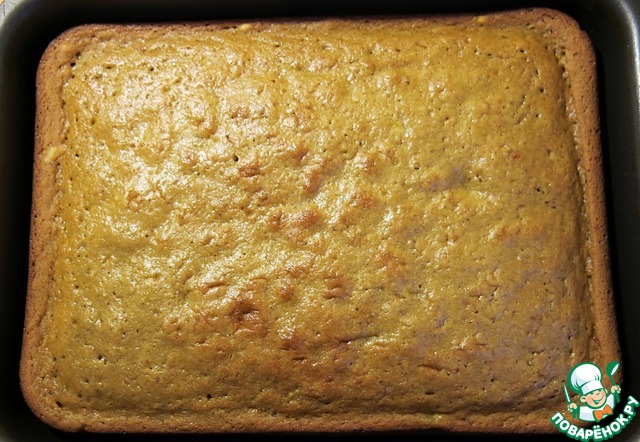 Форму смазываем маслом или выкладываем пергаментом. Пирог отправляем выпекаться при t=180 градусов на 30 мин. Затем проверяем готовность зубочисткой. Если необходимо, то оставляем выпекаться ещё на 15 мин., но немного снижаем t.