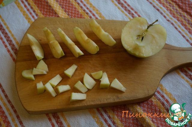 Антоновские яблоки (первый секрет) нарезать вот такими небольшими треугольничками (второй секрет).
