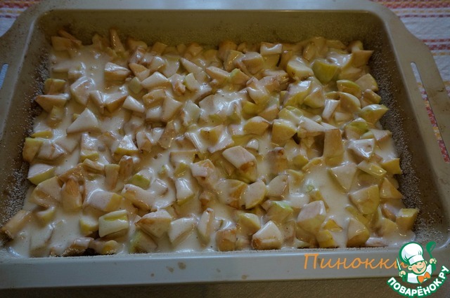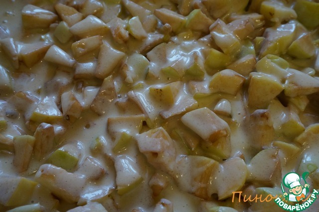 Можно сделать проще- яблоки добавить в миску с тестом, аккуратно перемешать и затем переложить в форму.