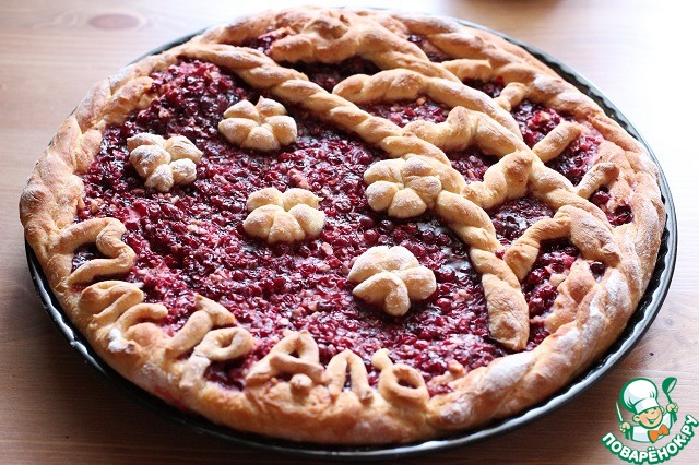 13. Украсить пирог. Выложить корзинку и цветочки из оставшегося теста.