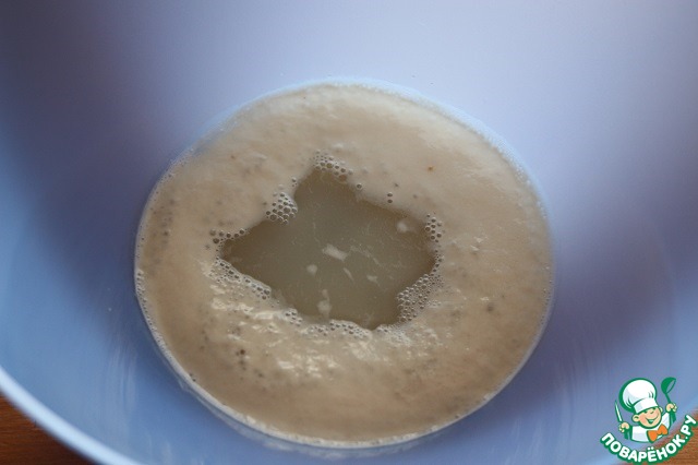 4. Как только дрожжи поднимутся пушистой шапочкой (внутри звезда символично появилась), добавить рисовую муку.