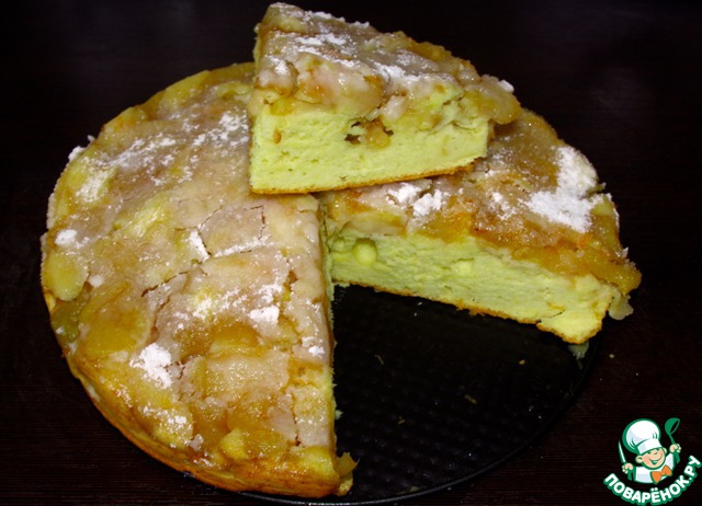 Перемешать, вылить сверху яблок и немного разровнять. Поставить в заранее разогретую духовку до 200*, снизить температуру до 180*.