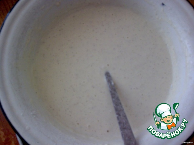 Яйца взбить со сметаной, кефиром, солью, перцем, мукой и крахмалом.