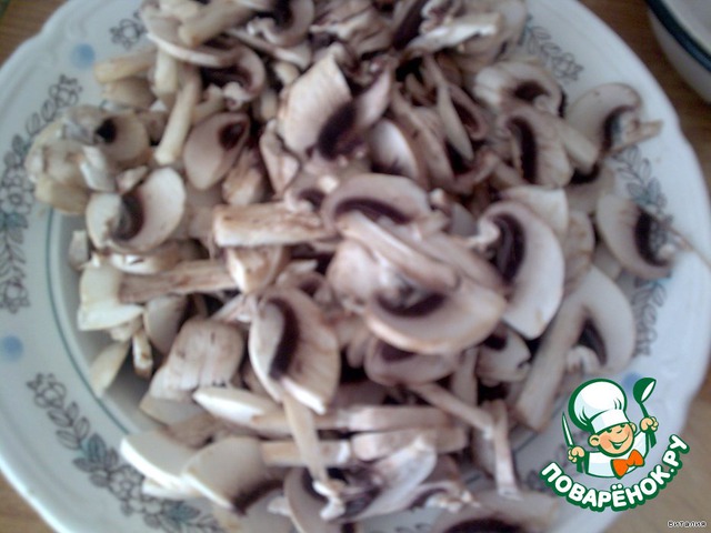 Грибы порезать и тоже обжарить на масле отдельно от лука.
