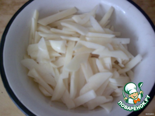 Поверх картофеля высыпать обжаренные грибы, а затем обжаренный лук.