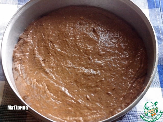 Для этого пирога лучше всего взять разъёмную форму (у меня d=24 см), выстелить дно пекарской бумагой, смазать маслом (я использовала "Идеал"). Вылить тесто в форму.