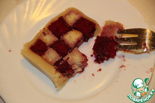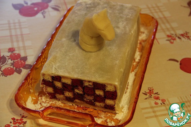 | Представляю вашему вниманию пирог не только для любителей шахмат. Выглядит эффектно, а вкус такой нежный, приятный и необычный, что его нужно только пережить. Попробуйте, оцените и выскажите своё мнение. ПРИЯТНОГО АППЕТИТА В 100 г готового продукта содержится: Белки-8,8 г; Углеводы-52,7 г; Жиры-20,6 г; Калорийность- 423,5 кКал. |