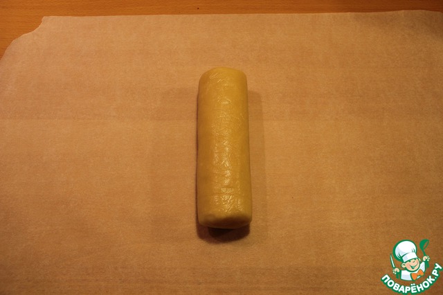 Достаём марципан из холодильника и кладём на бумагу для выпечки.